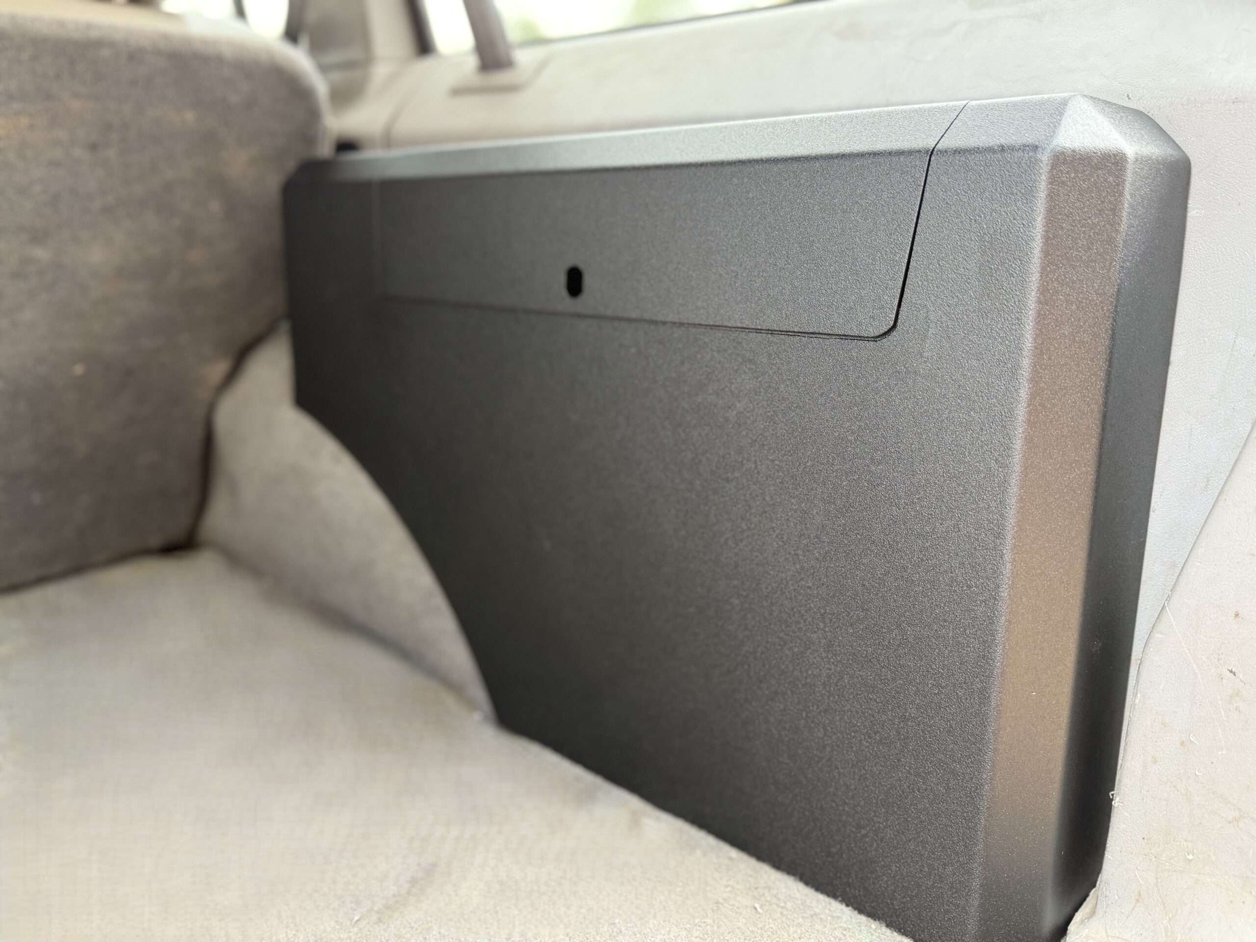 Lockable storage cubby for your 84-01 Jeep XJ that bolts over the otherwise useless storage area. Requires removing the plastic to install two studs and a floor bolt for mounting.